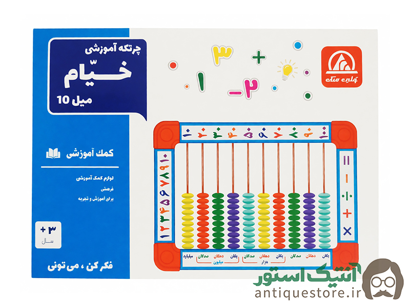 چرتکه آموزشی 10 میل خیام - به همراه نوشتار فارسی برای یادگیری آسان تر - مناسب برای آموزش کودکان و دانش آموزان